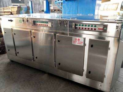 采用原有的UV光氧和光觸媒效應上加入均流板產(chǎn)生五級凈化效果,高效除惡臭,具有無需添加任何物質,適應性強,運行成本低,無需預處理等優(yōu)勢的一款產(chǎn)品,用于煉油廠、橡膠廠、化工廠、制藥廠、污水處理廠、垃圾轉運站等惡臭氣體的脫臭凈化處理。 2、有機廢氣凈化效率:≥95%; 3、設備阻力:≤300Pa; 4、電源電壓:380V,50HZ 5、電功率:500W-30000W 6、備噪聲:≤45Db 2、利用高能高臭氧UV紫外線光束分解空氣中的氧分子產(chǎn)生游離氧,即活性氧,因游離氧所攜正負電子不平衡所以需與氧分子結合,進而產(chǎn)生臭氧。 3、惡臭氣體利用排風設備輸入到本凈化設備后,凈化設備運用高能C波光束及臭氧對惡臭氣體進行協(xié)同分解氧化反應,使惡臭氣體物質其降解轉化成低分子化合物、水和二氧化碳,再通過排風管道排出室外。 4、利用高能UV光束裂解惡臭氣體中細菌的分子鍵,破壞細菌的核酸(DNA),再通過臭氧進行氧化反應,徹底達到脫臭及殺滅細菌的目的。 |